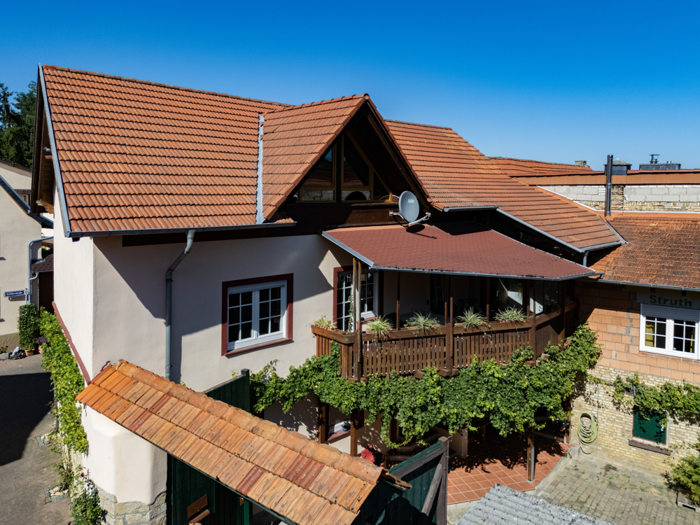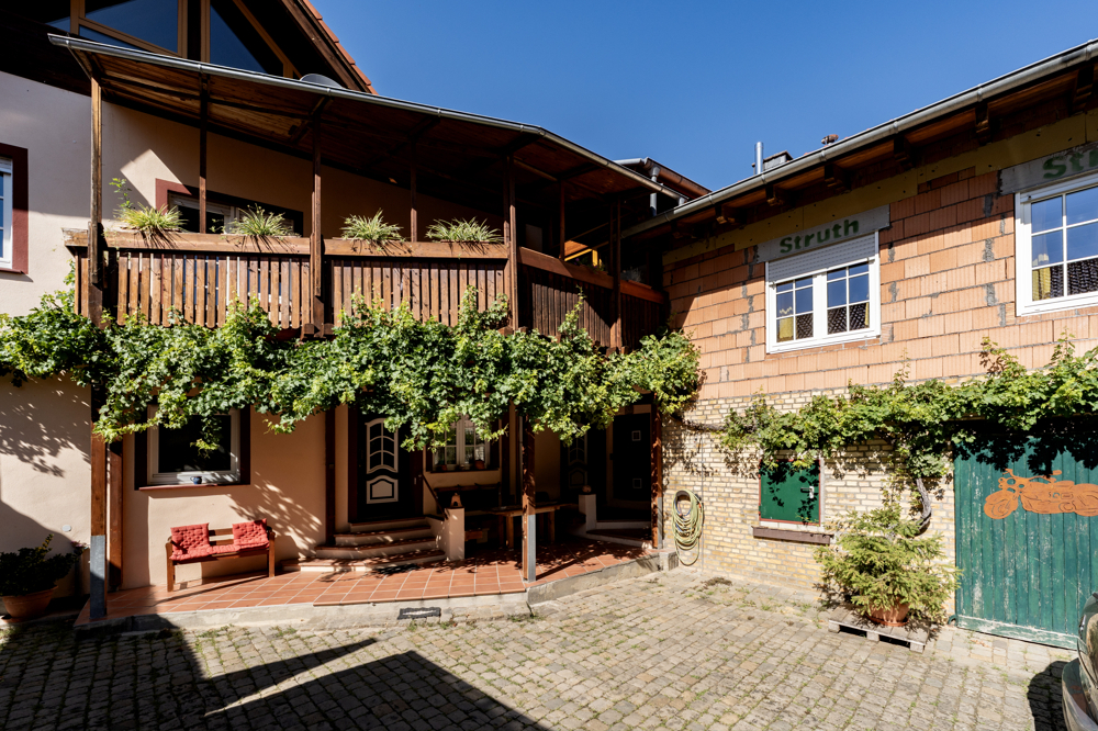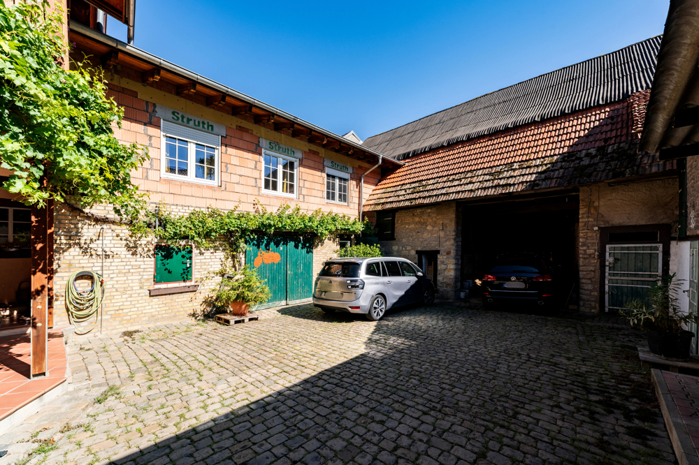 Mit zwei Wohneinheiten und Nebengebäuden bietet der Hof eine Vielzahl an Möglichkeiten zur kreativen Entfaltung, sei es als großzügiges Familienhaus, als Verbindung von Wohnen & Arbeiten oder einfach als idyllischer Rückzugsort. Der weitläufige Innenhof bietet nicht nur reichlich Platz zum Verweilen, sondern führt auch zur angrenzenden Scheune, dem Kelterhaus, zum alten Weinkeller und weiteren Nebenflächen.