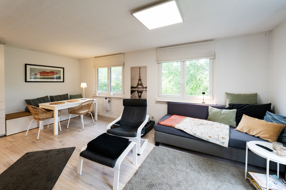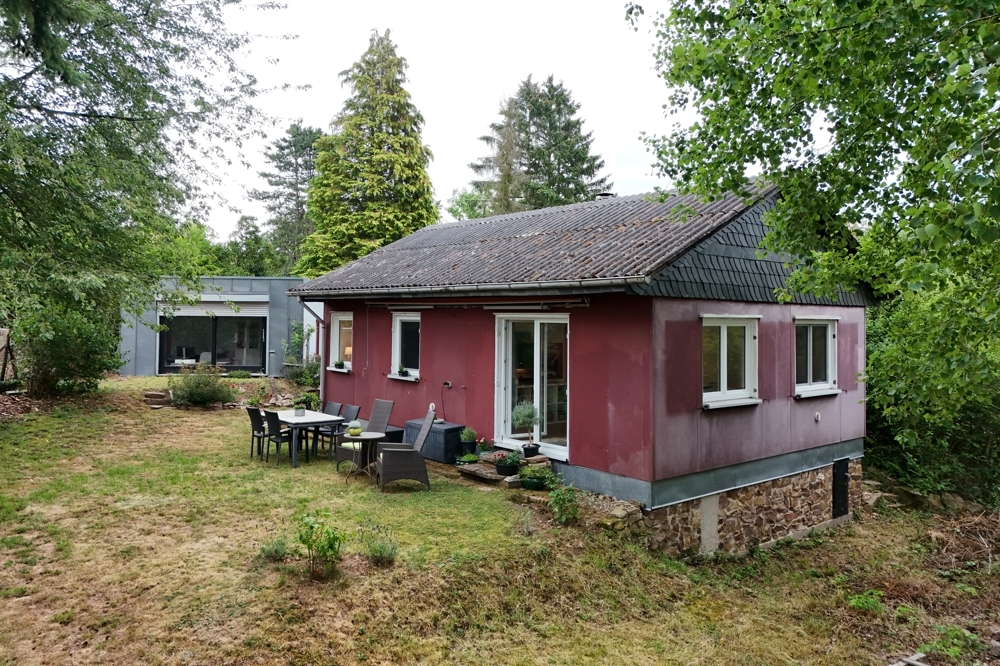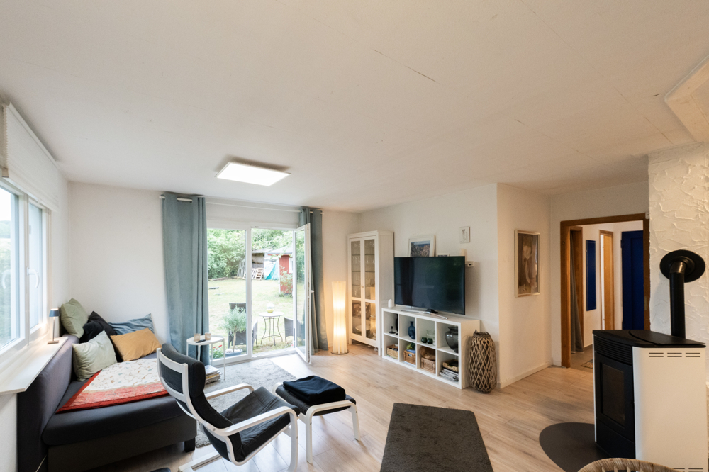 Entfliehen Sie dem hektischen Alltag und genießen Sie erholsame Wochenenden in Ihrem eigenen Rückzugsort im Wochenendgebiet von Daxweiler. Auf einem 1.125 m² großen Grundstück erwartet Sie ein kleines um ca. 1978 errichtetes Holzhaus mit offenem Wohnraum, einem Schlafzimmer, Kinderzimmer und Bad.Das Haus bietet auf ca. 50 m² Wohnfläche alles, was man für eine entspannte Auszeit braucht: Einen gemütlichen Wohnraum mit Ofen, der auch an kühleren Tagen für angenehme Wärme sorgt, eine einladende Essecke und eine offene moderne Küche.