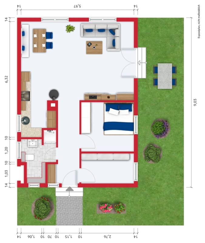 Wohnraum, Schlafzimmer, Kinderzimmer, Küche, Bad, Flur